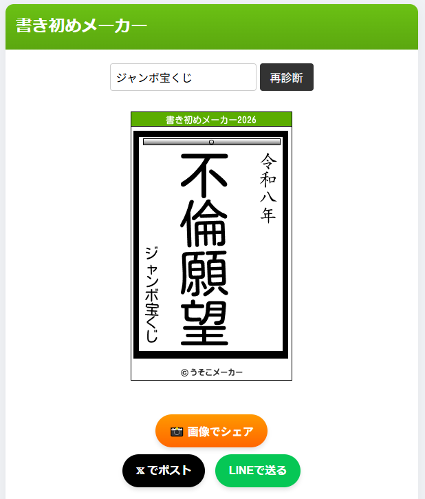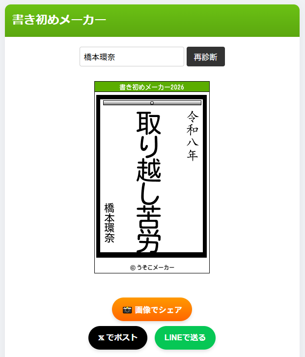特に有名なのが、診断系コンテンツでおなじみの「うそこメーカー」シリーズ。 毎年のように「書き初めメーカー」が公開され、SNSで話題になります。