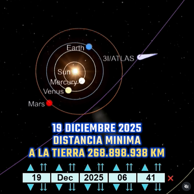 2025 年 12 月 19 日、3I/ATLAS は地球に最も接近しますが、その距離は約 2 億 6800 万キロメートルで、地球と太陽の間の距離のほぼ 2 倍です。