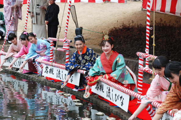 平安時代には、紙で作った人形に災いを移し、川に流す「流し雛(ながしびな)」が行われていました。 これが後に、飾るための雛人形へと発展していきます。