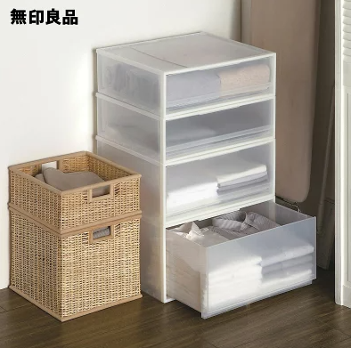 無印良品の収納用品は、シンプルでどんな部屋にも馴染むのが特徴。 特にポリプロピレン収納シリーズは、サイズ展開が豊富で組み合わせやすく、新生活の定番アイテムです。