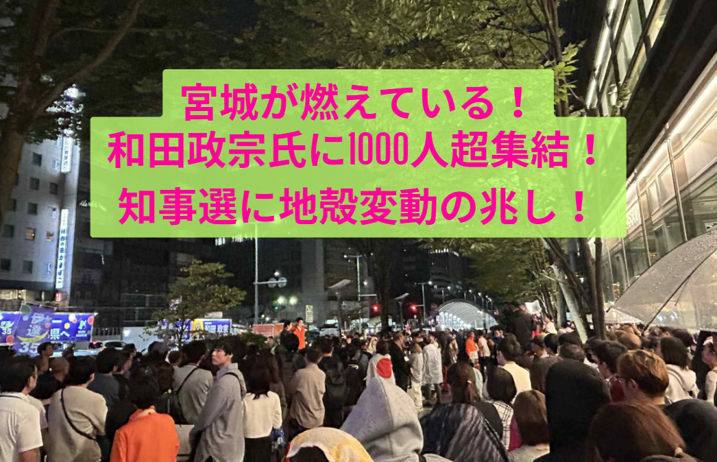 現職・村井嘉浩知事が盤石と思われた宮城県知事選に突如現れた対抗馬——和田政宗氏。その街頭演説には1000人を超える聴衆が自発的に集まり、期日前投票数は前回比31倍という異常事態を記録した。保守改革派の参政党も全面支援に乗り出し、「水道再公営化」「移民政策見直し」などを掲げた和田氏の主張が、ネット世論や現地の若年層・中高年層を巻き込みながら“うねり”となって広がっている。いま、宮城で何が起きているのか――その背後にある民意と怒り、そして希望に迫る。